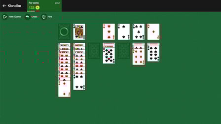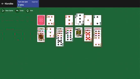 Klondike Solitaire ist ein beliebtes Kartenspiel, bei dem das Ziel darin besteht, alle Karten in aufsteigender Reihenfolge nach Farbe auf die Fundamentstapel zu legen.