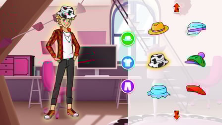 - Benutze die Maus, um Outfits auszuwählen und zu entwerfen