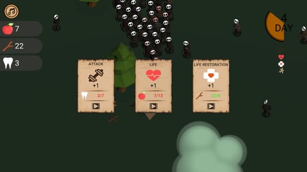 Nutze diese Steuerungen effektiv: Pfeiltasten zur Bewegung am Computer; Wischgesten auf einem Mobilgerät, um den Wald zu durchqueren. Drücke die "A"-Taste, um anzugreifen, und "S", um Gegenstände aufzuheben. Beherrsche diese Steuerungen, um länger gegen die Zombie-Angriffe zu überleben.