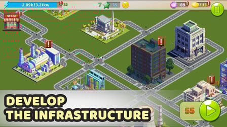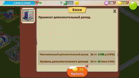 Sie können Ihre Energiequellen über das Menü im Spiel aufrüsten, in dem Sie Optionen für Verbesserungen wie Wärme- oder Kernkraftwerke sehen.