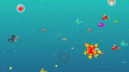A: Das Hauptziel ist es, den Ozean als mächtiger Hai zu durchqueren und mit deinen Laserangriffen Hindernisse zu überwinden und Feinde zu besiegen.