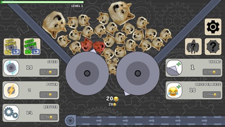 Auf Mobile: Tippen Sie auf den Bildschirm, um Meme zu vernichten. Je mehr Sie klicken oder tippen, desto schneller arbeiten Ihre Zahnräder, was zu mehr Meme-Ausgaben führt.