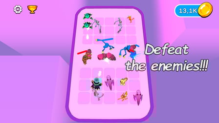 Wähle zunächst deine ersten Monster aus und platziere sie auf dem Schlachtfeld. Füge identische Monster zusammen, um stärkere Einheiten zu bilden. Positionieren Sie Ihre Truppen strategisch, um ihre Stärken zu optimieren und den Feind effektiv zu bekämpfen. Überwachen Sie Ihre Ressourcen und treffen Sie taktische Entscheidungen, um Ihre Gegner zu überwältigen.