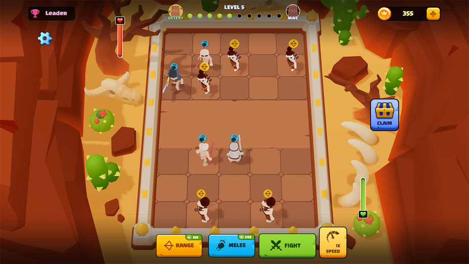 Verwende deine Maus, um Einheiten in den Kampf zu klicken und zu ziehen. Auf Mobilgeräten tippst du einfach und hältst, um Charaktere zu bewegen. Kombiniere Einheiten, indem du sie übereinander platzierst, um stärkere Helden und Kampftruppen zu erschaffen.