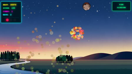 Versuche, die Zeitverlangsamung strategisch zu nutzen und ziele präzise auf die Meteoriten, um eine höhere Zerstörung zu erzielen und mehr Punkte zu sammeln.