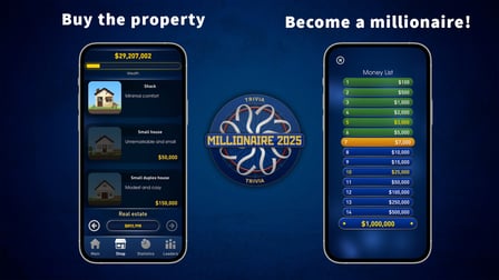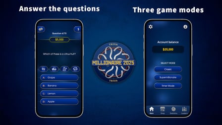 Millionärs-Quiz 2023 ist ein quizbasiertes Spiel, das Ihr Allgemeinwissen zu einer Vielzahl von Themen testet. Das Spiel bietet: