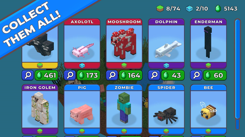 Du kannst mehr Spielwährung verdienen, indem du gesammelte Mobs verkaufst, Ziele erfüllst und an besonderen Events teilnimmst.