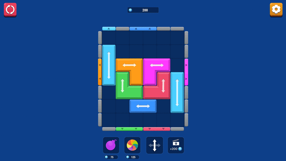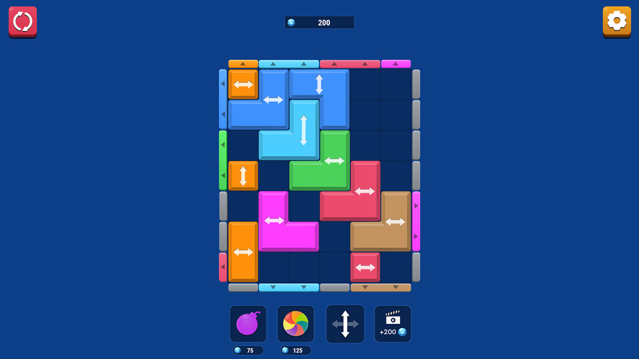 Das Spielen von Moving Colored Blocks ist einfach. Beginne damit, einen Block aus dem Raster auszuwählen. Je nach Pfeil kannst du ihn in die erlaubte Richtung schieben. Jeder Zug sollte gut durchdacht sein, da es das Ziel ist, das Raster von allen Blöcken zu befreien. Es eilig zu haben ist nicht nötig; genieße die Entspannung, die mit durchdachtem Gameplay einhergeht.