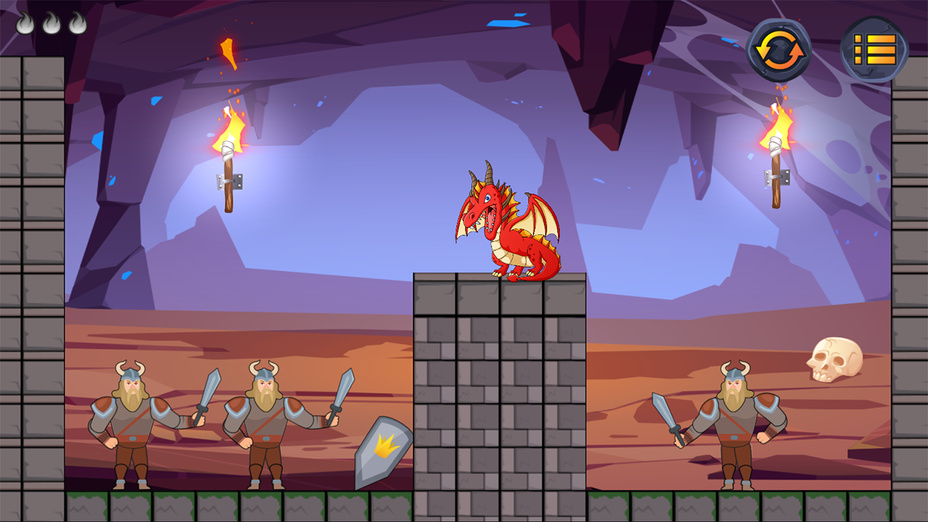 Auf Ihrem Computer, klicke mit der Maus, um anzugreifen. Tippen Sie auf Mobilgeräten einfach auf, um Ihren feurigen Atem zu entfesseln! Navigiere durch Hindernisse und konzentriere dich auf deine Feuerballgenauigkeit, um Feinde auszuschalten.