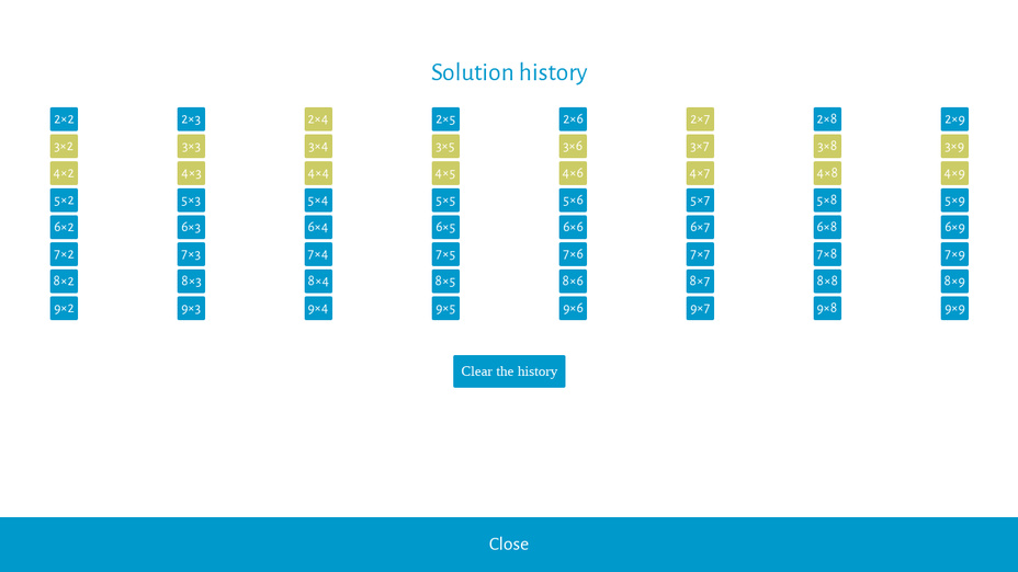 Ja, das Spiel ist für Kinder jeden Schulalters geeignet und daher ein großartiges Werkzeug zum Erlernen der Multiplikation.