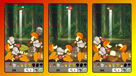 Pilze zusammenführen zu spielen ist ein Kinderspiel! Auf Ihrem Computer, klicken und ziehen Sie mit der Maus, um den Pilz zu positionieren, und lassen Sie ihn dann los, um ihn zu werfen. Auf Ihrem Telefon, tippen und halten Sie auf dem Bildschirm, um zu zielen, und lassen Sie dann los, um zu starten. Das Zusammenführen von Pilzen ist unerlässlich, um die unzähligen lustigen und skurrilen Sorten zu entdecken, die sich im Wald verstecken.