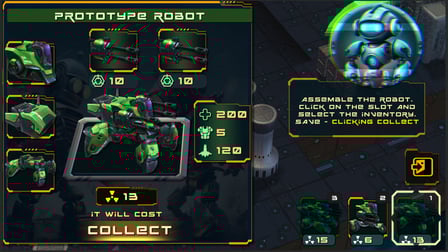 - Leertaste zum Auswählen und Bauen von Robotern