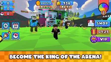 Tauche ein in lebendige Grafiken und ein dynamisches Klang Erlebnis mit Musik von beliebten Bloggern. Das Gameplay ist darauf ausgelegt, die Spieler durch verschiedene Herausforderungen und die Möglichkeit, deinen Charakter mit einzigartigen Skins und Haustieren zu individualisieren, zu fesseln. Die Atmosphäre ist elektrisierend, während du ein sich ständig wandelndes Schlachtfeld erlebst!