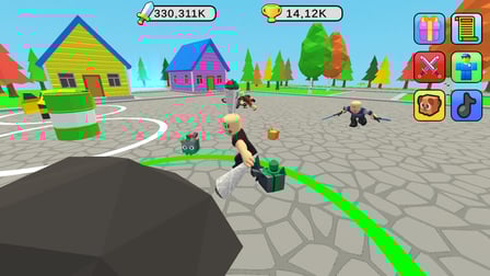 Um Obby Fighter: Village Duels zu spielen, verwende die Pfeiltasten zur Bewegung und die Leertaste zum Angreifen. Auf mobilen Geräten nutzt du virtuelle Tasten, um dich zu bewegen und Angriffe auszuführen. Wähle deine Waffe aus deinem Arsenal, von skurrilen Samenbeuteln bis hin zu mächtigen Cyber-Schwertern, um verschiedene Gegner zu besiegen. Das Abschlussen der täglichen Quests belohnt dich mit wertvollen Ressourcen und hilft dir, dein Charakterlevel zu steigern!