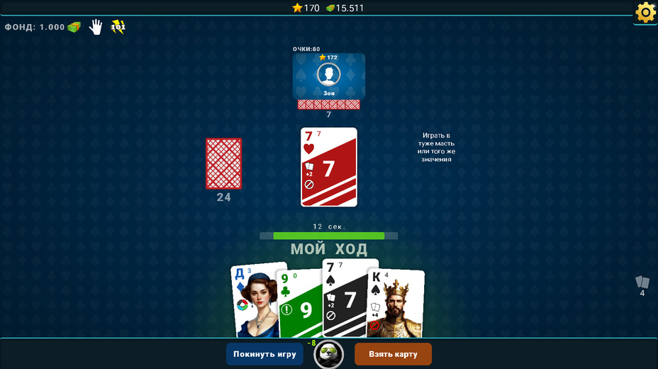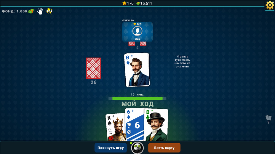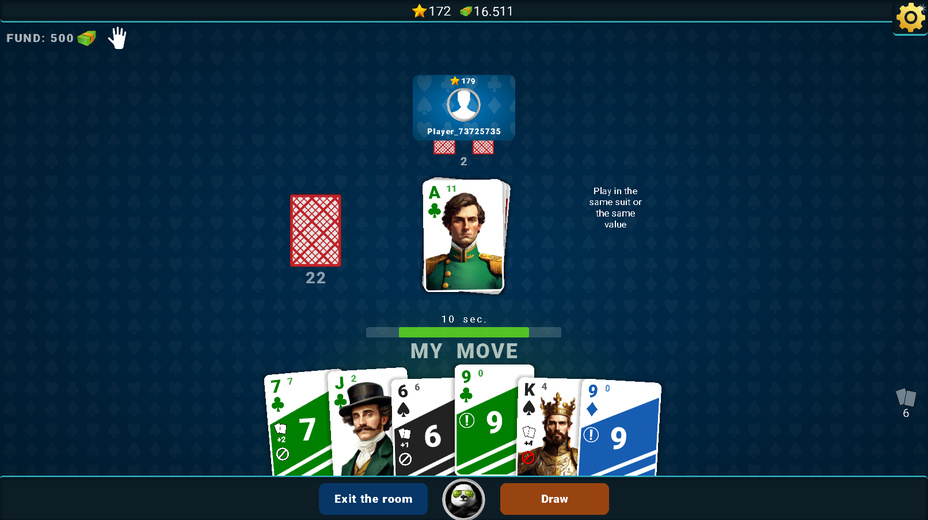 - Verwenden Sie die Maus- oder Touch-Steuerung, um Karten auszuwählen und zu spielen
