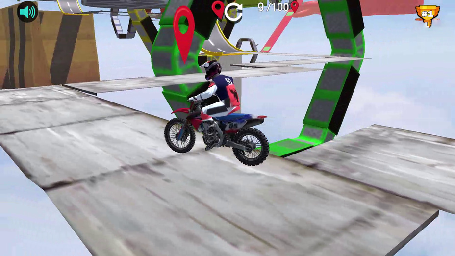 Das Hauptziel ist es, durch alle 100 Kontrollpunkte zu navigieren, Hindernissen auszuweichen und die Kontrolle über Ihr Motorrad zu erlangen.