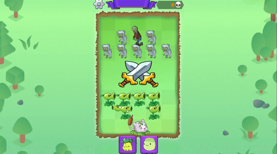 - Wähle und ziehe verschiedene Pflanzen auf das Schlachtfeld.