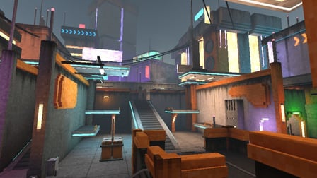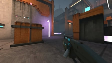 Playarena kombiniert eine lebendige Cyberpunk-Ästhetik mit dynamischem Gameplay und ermöglicht taktische Bewegungen und verschiedene Waffenanpassungen, die das Wettbewerbserlebnis verbessern.