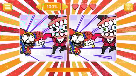 Pomni and Digital Circus ist ein aufregendes Puzzlespiel, bei dem Sie Ihre Beobachtungsgabe auf die Probe stellen können, indem Sie 10 Unterschiede zwischen zwei Bildern finden. Spiele kostenlos online ohne Download und tauche ein in die faszinierende Welt des digitalen Zirkus. Diese lebendige und faszinierende Umgebung fordert Sie heraus, Unterschiede in 20 einzigartigen Levels aufzudecken, was sie perfekt für Kinder und Puzzle-Enthusiasten gleichermaßen macht. Egal, ob Sie sich auf einem Desktop-, Android- oder iOS-Gerät befinden, Pomni und Digital Circus bieten ein ansprechendes Erlebnis, das Ihre Aufmerksamkeit schärft und Ihr Gehirn auf unterhaltsame, interaktive Weise trainiert.