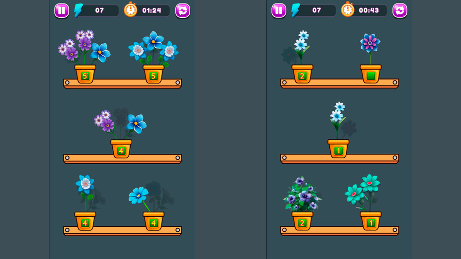 Willkommen in der bezaubernden Welt von Pots, wo Sie aus einem einfachen Sämling atemberaubende Blumen züchten können! In diesem fesselnden online spiel, Ihre Mission ist es, bis zum 8. März eine Reihe wunderschöner Blüten zu kultivieren und zu arrangieren. Sortieren Sie jede einzelne Blume in die richtigen Töpfe und beobachten Sie, wie sie sich in prächtige verwandeln blumensträucher das wird jeden blenden, der sie ansieht. Machen Sie sich bereit für eine kostenlos reise voller lebendiger Farben und herrlicher Aromen direkt von Ihrem Computer oder Telefon!
