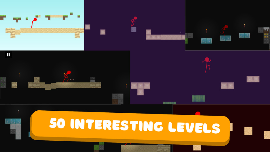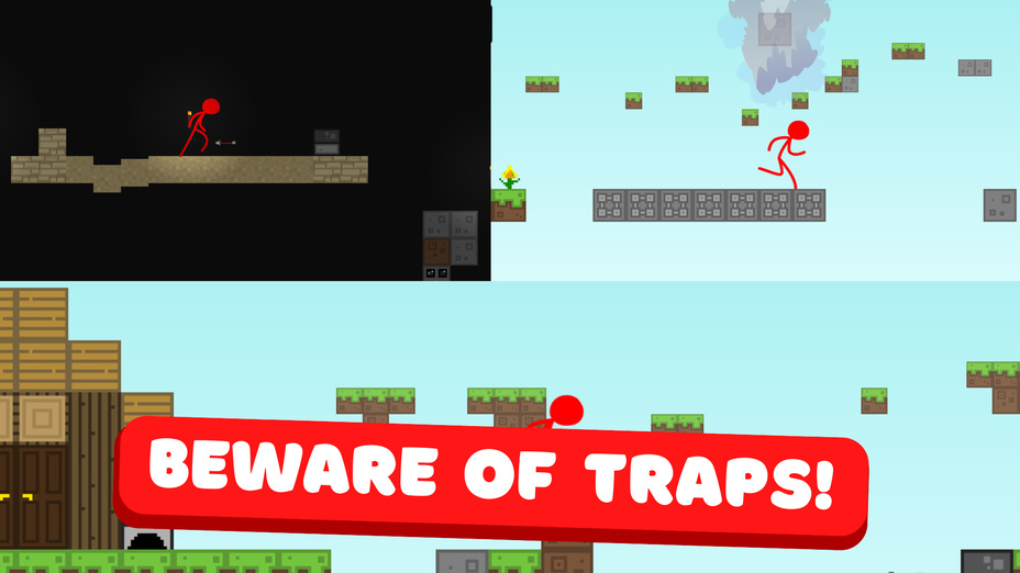 - Navigieren Sie durch die Plattformen: Bewege den roten Strichmännchen mit den Steuerelementen über die Plattformen und weiche dabei Fallen und Hindernissen aus.