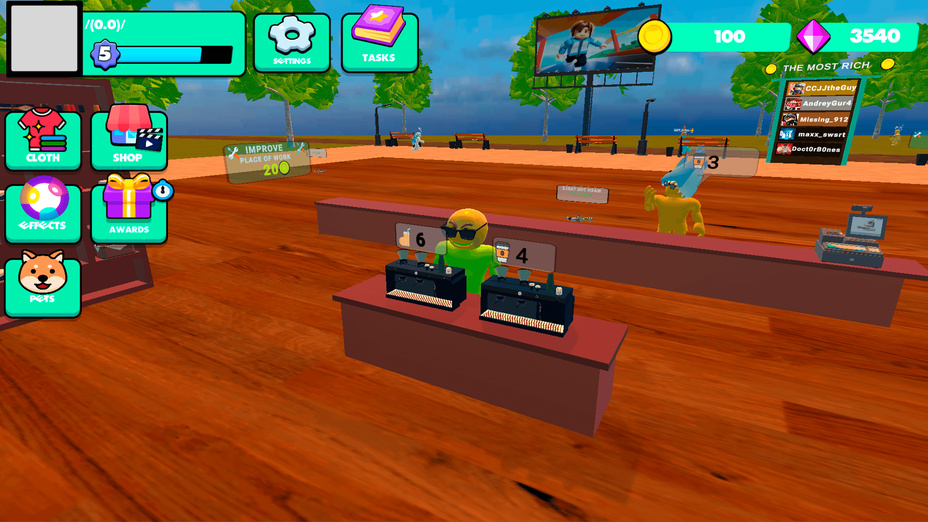 Restaurant Business Tycoon ist ein aufregendes Casual- und Arcade-Spiel, in dem Sie stolzer Besitzer Ihres eigenen Restaurants werden können. Spielen Sie kostenlos online ohne Download und tauchen Sie ein in die pulsierende Welt des Restaurantmanagements. Ihr primäres Ziel ist es, das erfolgreichste Geschäft zu schaffen, indem Sie Ihr Unternehmen vergrößern, das Angebot erweitern und das Interieur Ihres Unternehmens auf den neuesten Stand bringen. Während Sie in das Spiel eintauchen, werden Sie den Nervenkitzel erleben, den Besuchern Komfort zu bieten, ihnen beim Einkaufen und Entspannen zu helfen und Pläne zu organisieren, die den Bedürfnissen jedes Kunden entsprechen. Verdiene Geld und baue dein Geschäft als erfahrener Manager aus. Das Spiel ist auf Desktop-, Android- und iOS-Plattformen verfügbar und somit für eine Vielzahl von Spielern zugänglich. Ohne Registrierung und endlosen Spaß ist es perfekt für Kinder, Jugendliche und alle, die eine gute Herausforderung lieben!