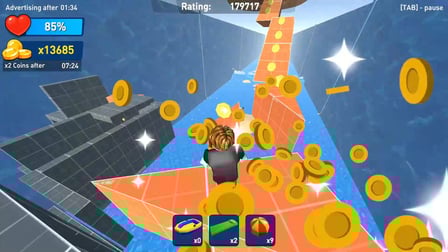 - Parkour-Herausforderungen: Laufen Sie an Wänden und Decken entlang, um den Wellen auszuweichen.