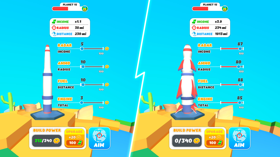 Erwägen Sie beim Navigieren durch den Kosmos, mit verschiedenen Konfigurationen Ihrer Rakete zu experimentieren. Das richtige Gleichgewicht zwischen Stärke und Flexibilität ist entscheidend für die Optimierung Ihrer Zerstörungsfähigkeiten. Investiere deine Ressourcen außerdem mit Bedacht in leistungsstarke Upgrades, um sicherzustellen, dass du jeden Planeten erobern kannst!