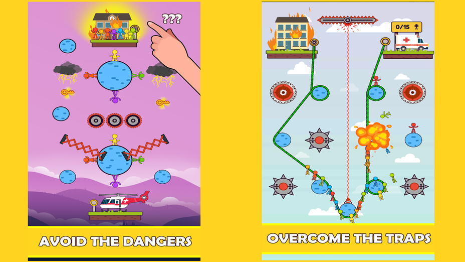 Rope Rescue Hero zeichnet sich durch komplizierte Rätsel und die Notwendigkeit kreativen Denkens aus. Jedes Level stellt einzigartige Herausforderungen dar, die sorgfältige Planung und strategische Seilplatzierung erfordern, um überwunden zu werden. Die Physik-Engine des Spiels fügt eine Ebene des Realismus hinzu, wodurch die Rätsel sowohl herausfordernd als auch lohnend werden. Egal, ob Sie durch schwingende Hindernisse navigieren oder Wege finden, gefährliche Gefahren zu umgehen, Rope Rescue Hero verspricht stundenlanges fesselndes und zum Nachdenken anregendes Gameplay.