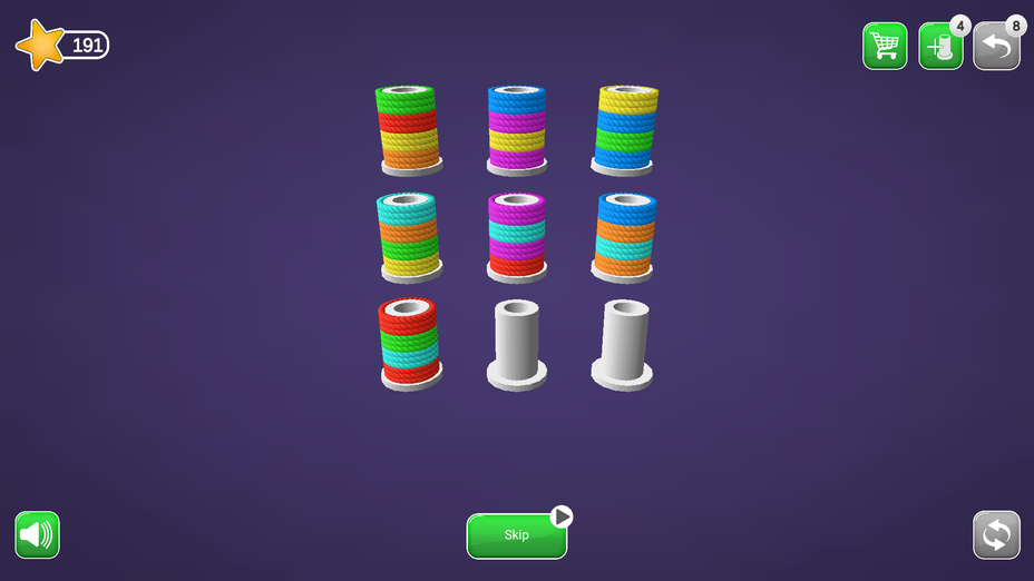 Verbessern Sie Ihre Gameplay erfahrung mit diesen Strategien: Konzentriere dich darauf, die Seile zuerst nach Farben zu sortieren, nutze deine Rollback-Aktionen mit Bedacht, um schwierige Entscheidungen zu überdenken, und nutze den Vorteil, frühzeitig eine zusätzliche Spule hinzuzufügen, um komplizierte Level zu vereinfachen.