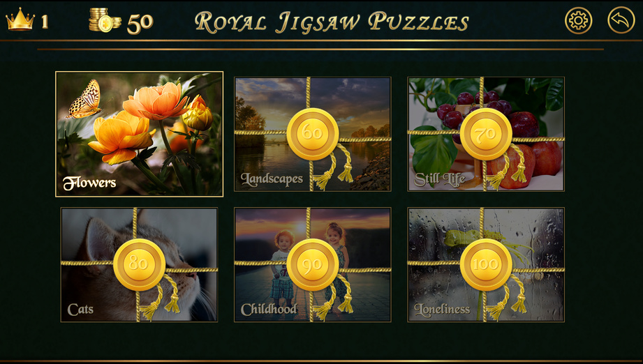 Royal Jigsaw Puzzles zeichnet sich durch eine wunderschöne und vielfältige Bildbibliothek aus, die von ruhigen Landschaften bis hin zu komplizierten Kunstwerken reicht. Das Spiel unterstützt bis zu 1000 Teile und ist selbst für die erfahrensten Puzzle-Enthusiasten eine Herausforderung. Die Hintergrundmusik und die sanften Soundeffekte verbessern das immersive Erlebnis, während Sie mit den anpassbaren Einstellungen das Spiel nach Ihren Wünschen anpassen können.