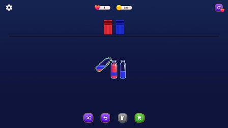 Die Steuerung ist einfach: tippe auf eine Flasche, um sie auszuwählen, und tippe erneut auf eine andere Flasche, um den Sand zu gießen. So kannst du schnell und unkompliziert die Farben sortieren und die Herausforderungen meistern.