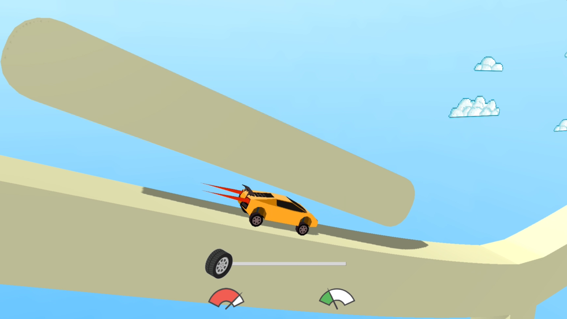 Nutze den Schieberegler, um die Größe deiner Räder anzupassen. Dies ist dein Hauptwerkzeug zur Navigation durch die Levels. Größere Räder klimmen über Hindernisse; kleinere Räder beschleunigen dich. Benutze den Neustartbutton, wenn du feststeckst.