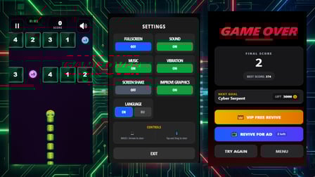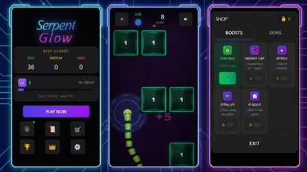Um dein Gameplay in Serpent Glow zu verbessern, setze smarte Strategien ein: Strebe immer nach Blöcken mit niedrigeren Zahlen und zögere nicht, deine Boni klug zu nutzen. Halte das Gleichgewicht zwischen dem Wachsen deines Schwanzes und dem Erhalten deiner Leben für einen erfolgreichen Lauf.