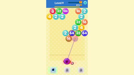 - Ziele und schieße auf die nummerierten Bälle, um sie zusammenzuführen und höhere Zahlen zu erzeugen.