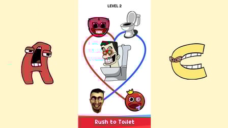 Tauchen Sie ein in die skurrile Welt von Skibidi Toilette und Huggy zeichnen einen Weg, ein unterhaltsames und herausforderndes Spiel, das Ihre Denk- und Koordinationsfähigkeiten auf die Probe stellt. In diesem fesselnden Online-Erlebnis ist es Ihr Ziel, liebevolle Herzen zu verbinden und sie zu ihrem Ziel zu führen, bevor es zu spät ist. Mit jedem Level wächst die Aufregung, wenn Sie Linien zeichnen, um Skibidi mit der Toilette, Huggy mit dem Blau und Rot mit dem Alphabet zu verbinden und gleichzeitig Zeichenkollisionen zu vermeiden. Dieses entzückende Spiel wird Sie auf Trab halten, während Sie sich beeilen, um ihnen zu helfen, Erleichterung und Umarmungen zu finden! Spielen Sie noch heute kostenlos auf Ihrem Handy oder Computer!