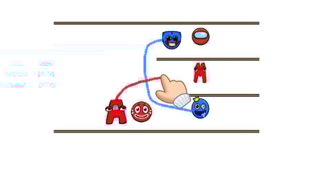 - Zeichnen Sie Linien, um die Zeichen mit ihren entsprechenden Zielen zu verbinden, ohne Kollisionen zu verursachen.