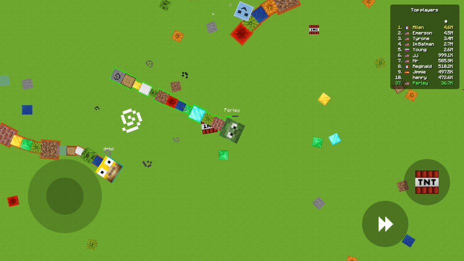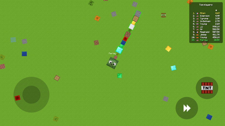SlitherCraft bietet eine Vielzahl einzigartiger Funktionen, die es von anderen Spielen des Genres abheben. Das Spiel enthält eine lebendige Karte mit dynamischen Umgebungen, die aufregende Spielerlebnisse ermöglichen. Die Spieler können durch verschiedene Terrains navigieren, die jeweils mit einzigartigen Elementen wie Blöcken und TNT gefüllt sind, die der Strategie Tiefe verleihen. Der Multiplayer-Aspekt ermöglicht Echtzeit-Wettkämpfe gegen andere Spieler und fügt eine Ebene der Intensität und Unvorhersehbarkeit hinzu. Das Spiel bietet auch regelmäßige Updates, die neue Skins und Herausforderungen einführen, um das Gameplay frisch und ansprechend zu halten.