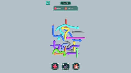 Snake Jam zu spielen ist unkompliziert und macht Spaß! Am Computer klickst du mit der Maus, um die Schlangen zu ziehen und sie von ihren Knoten zu befreien. Wenn du auf einem Handy spielst, tippe einfach auf den Bildschirm, um mit den Schlangen zu interagieren – ziehe sie, um sie zu entwirren und freizulassen.