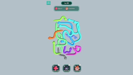Die Steuerung ist einfach und intuitiv: Klicke oder tippe, um eine Schlange auszuwählen und ziehe sie, um sie zu entwirren. Jede Bewegung zählt, also denke voraus, um zu vermeiden, dass die anderen Schlangen festhängen!