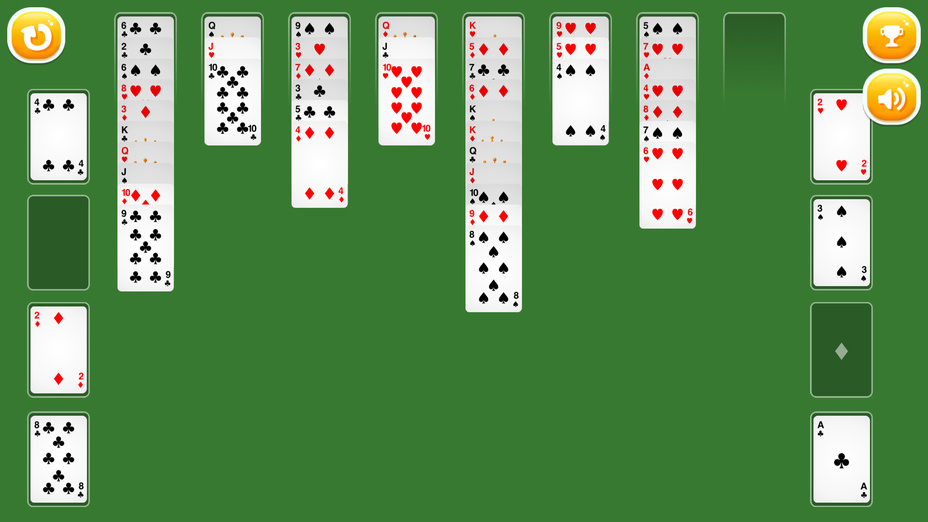 Solitaire FreeCell HD ist ein spannendes Karten- und Puzzlespiel, in dem Sie Ihren Verstand herausfordern und Ihre logischen Denkfähigkeiten verbessern können. Spielen Sie kostenlos online, ohne Download oder Registrierung, und tauchen Sie ein in die zeitlose Eleganz des klassischen Solitaires. Egal, ob Sie ein erfahrener Spieler oder neu im Spiel sind, Solitaire FreeCell HD bietet endlose Unterhaltung auf Desktop-, Android- oder iOS-Plattformen. Mit einer einfachen, benutzerfreundlichen Oberfläche ist dieses Spiel perfekt für eine kurze Pause oder ein ausgedehntes Gehirntraining. Genieße die Freiheit, alleine oder mit Freunden zu spielen und werde ein wahrer Solitaire-Meister ohne zeitliche Begrenzung. Das ansprechende Design und das Spielerbewertungssystem des Spiels sorgen für zusätzliche Spannung und machen es zu einem Muss für Kartenspielenthusiasten und Gelegenheitsspieler gleichermaßen.