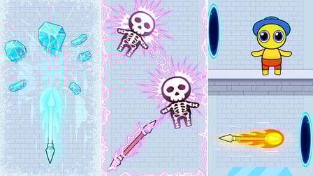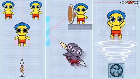 Hier ist eine einfache Anleitung, um sofort ins Geschehen von Spear Master einzutauchen. Auf deinem Telefon ziehst du deinen Finger nach hinten, um den Speer zu spannen, passt dein Ziel an und lässt los, um zu schießen. Am Computer ziehst du mit der Maus zurück und zielst auf den Speer, bevor du klickst, um zu schießen. Interagiere mit den Ragdolls für die ultimative Zufriedenheit des Sieges!