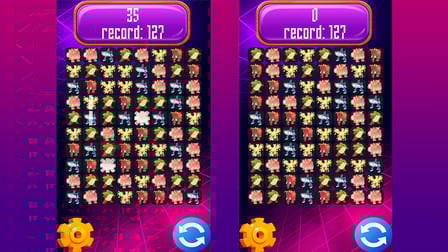 Betritt das Spiel, indem du auf eine Kachel klickst und sie ziehst, um sie mit einer benachbarten Kachel zu tauschen. Du musst Matches aus drei oder mehr Kacheln mit dem gleichen Symbol erstellen – horizontal oder vertikal. Auf einem Telefon tippst du auf nahegelegene Kacheln, um den Tausch zu starten, während du auf einem Computer die Maus verwendest, um zu klicken und zu ziehen. Schnelles Denken bringt dir Bonuszeit!