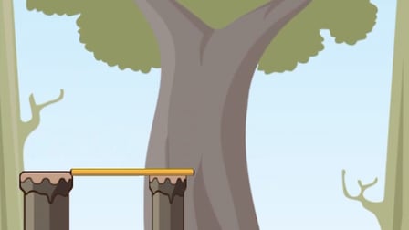 Wie mache ich den Stock auf die richtige Länge? Klicke und halte die linke Maustaste, um den Stock zu verlängern. Lass ihn los, wenn du denkst, dass er die richtige Länge hat, um die nächste Säule zu erreichen.