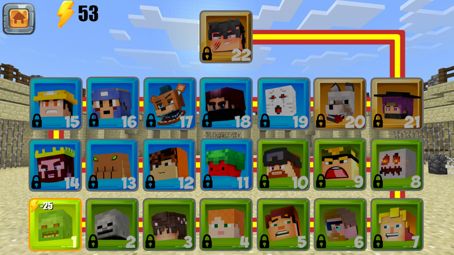 - Kämpfe mit verschiedenen Minecraft-Helden, um deine Fähigkeiten zu testen und Erfahrungen zu sammeln.