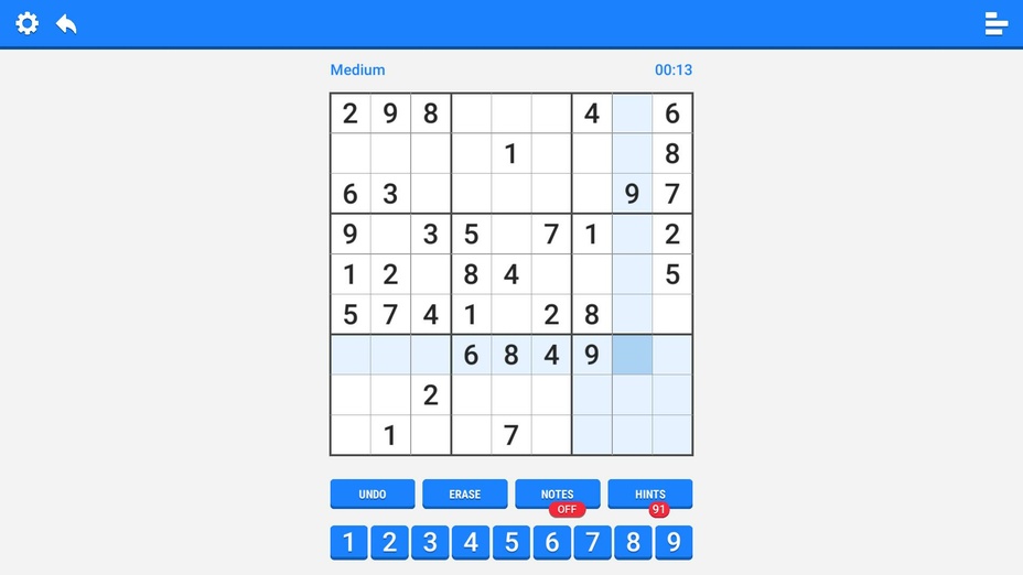 Sudoku PRO ist ein unkompliziertes Spiel, bei dem Sie ein 9x9-Raster mit Zahlen füllen müssen, um sicherzustellen, dass jede Zeile, Spalte und jeder 3x3-Abschnitt alle Ziffern von 1 bis 9 enthält. Beginnen Sie mit Ihrem bevorzugten Schwierigkeitsgrad und nutzen Sie Funktionen wie Notizen und Hinweise, um beim Lösen von Rätseln zu helfen. Genieße die mentale Herausforderung und bemühe dich, ein Sudoku-Meister zu werden!