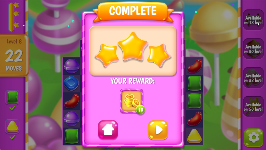 Beginnen Sie Ihr zuckerhaltiges Abenteuer, indem Sie drei oder mehr identische Bonbons kombinieren. Tausche benachbarte Kacheln aus, um Übereinstimmungen zu erstellen und die Ziele des Levels zu erfüllen. Im Laufe Ihres Fortschritts werden Sie auf komplexere Herausforderungen stoßen, die strategisches Denken und schnelle Reflexe erfordern. Nutze Booster und Mega-Bonbons zu deinem Vorteil, um schwierige Level zu meistern und Highscores zu erzielen.