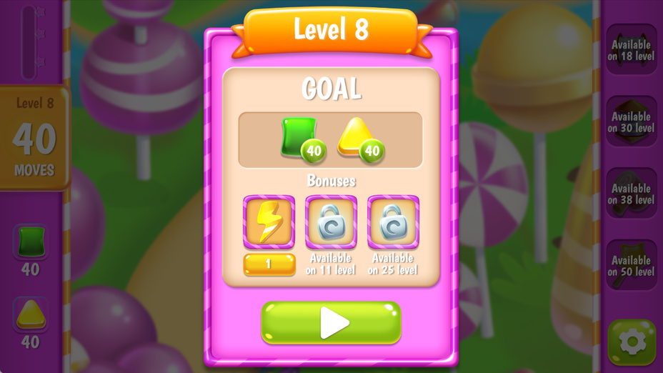 Das Hauptziel besteht darin, drei oder mehr identische Bonbons zusammenzubringen, um levelspezifische Ziele zu erreichen und im Spiel voranzukommen.