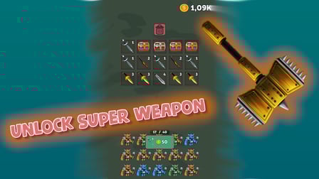 Tauchen Sie ein in die aufregende Welt von Schwerter verschmelzen Meister, ein aufregendes Echtzeit-Strategiespiel, das kostenlos zum Spielen und für jedermann konzipiert. Ihre Mission ist es, alle Gegner zu besiegen, indem Sie Schwerter, Hämmer und Äxte zu mächtigen Waffen verschmelzen. Du triffst auf gewaltige Feinde wie Drachen, Orks, Golems, Trolle und Minotauren, was jede Schlacht zu einem echten Test für Strategie und Geschicklichkeit macht. Setze deinen Verstand und deine Taktik ein, um über deine Feinde zu triumphieren und zum nächsten Level aufzusteigen. Bist du bereit, die Herausforderung anzunehmen und der ultimative Fusionsschwertmeister zu werden?