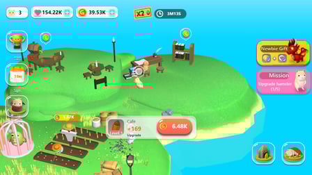 Das Spiel verfügt über intuitive Steuerelemente, die es den Spielern erleichtern, auf ihrer Insel zu navigieren. Spieler können auf verschiedene Gebäude klicken oder tippen, um mit ihnen zu interagieren, Hamster per Drag & Drop Aufgaben zuweisen und mit einfachen Gesten die wunderschönen Landschaften vergrößern und verkleinern. Egal, ob Sie Ressourcen verwalten oder Ihre Strukturen aufrüsten, die Steuerung ist auf ein nahtloses Spielerlebnis ausgelegt.